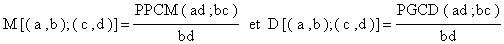Pour des entiers a, b, c, d, a’, b’, c’ et d’ :