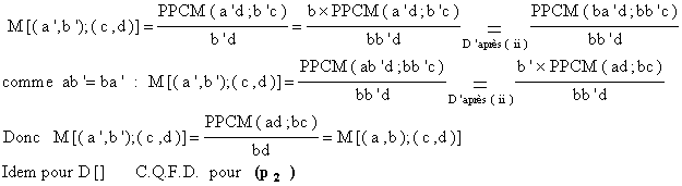(p2) : si ab’ = ba’ alors M[(a’,b’) ;(c,d)] = M[(a,b) ;(c,d)]