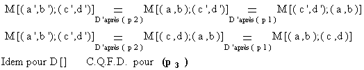 (p3) : si ab’ = ba’ et cd’ = dc’ alors M[(a’,b’) ;(c’,d’)] = M[(a,b) ;(c,d)]